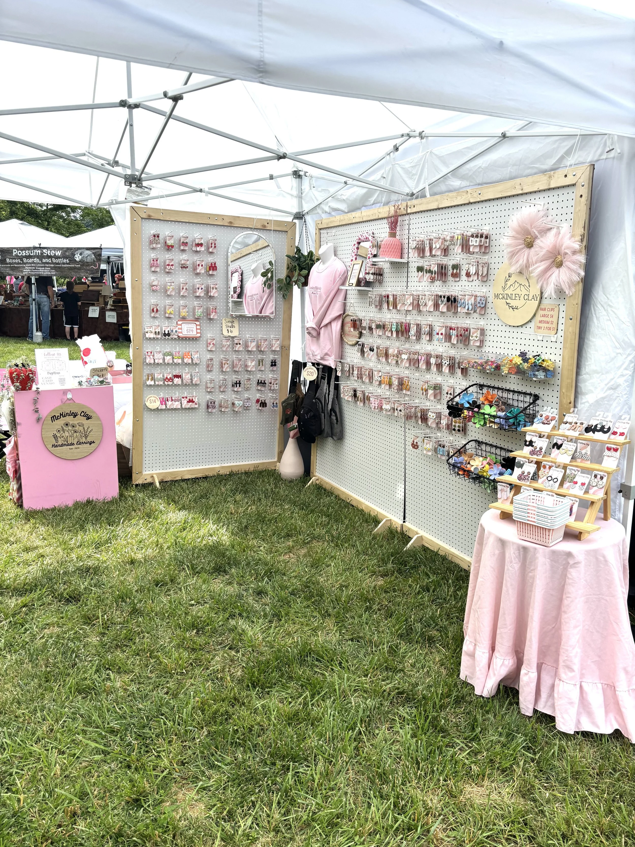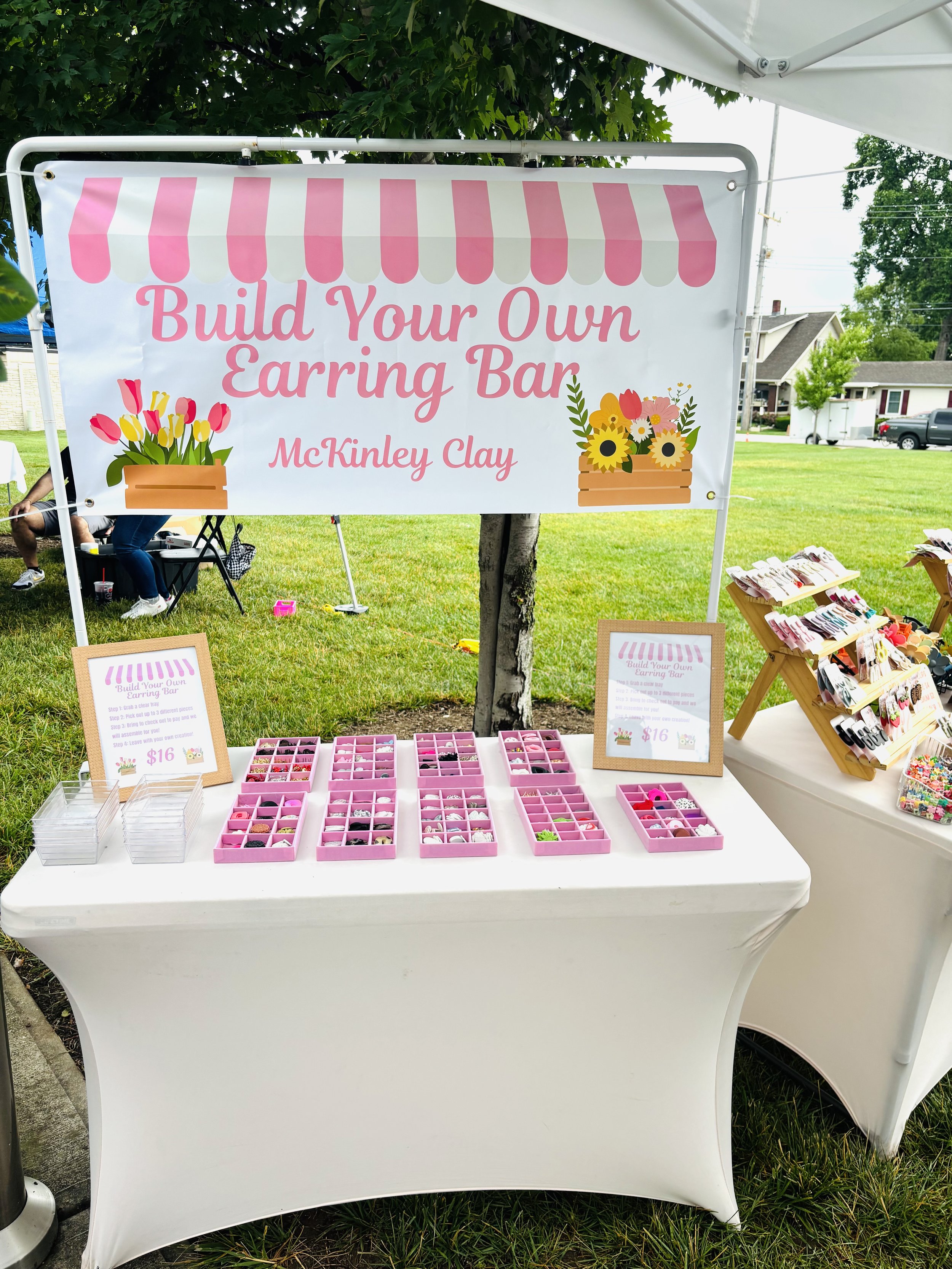 Our favorite place to be on a Saturday morning is the Jeffersonville, IN Farmers Market. The market is located at the base of the Big 4 Bridge on the Indiana side of the river. This market has dozens of vendors featuring fresh produce, baked goods, food trucks, coffee, hand made goods, and of course, McKinley Clay earrings & Embroidery By Mimi designs. Be sure to stop by and see us!